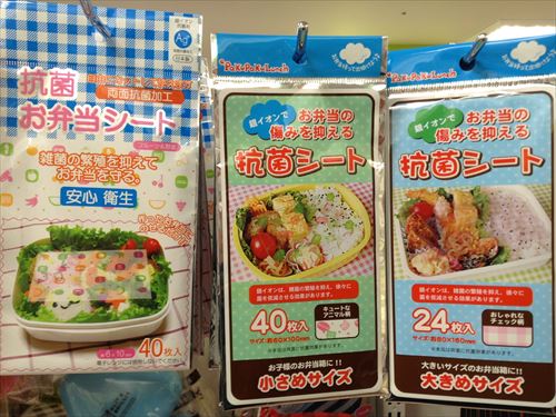 抗菌お弁当シートが充実しています。小サイズ40枚入りと大サイズ24枚入り。雑菌の繁殖を抑える役目があります。