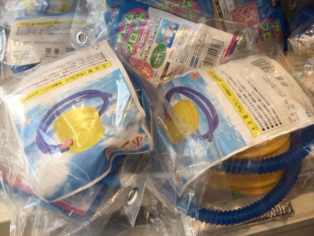 これだけ膨らますものが多いと、このポンプが活躍しそう。これも100均です。