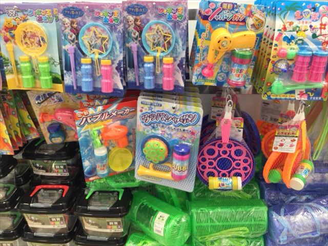ガン(銃)タイプやラッパ、イルカなど、色々なタイプのシャボン玉セットがあります。くまのプーさんやアナ雪(アナと雪の女王)のシャボン玉遊びもあります。
