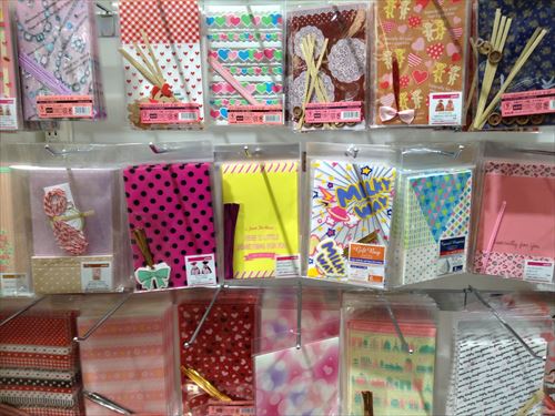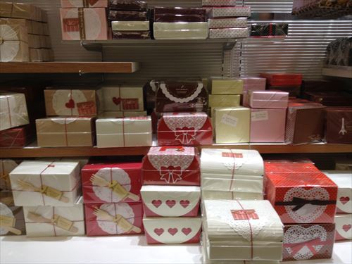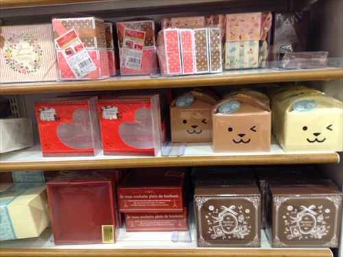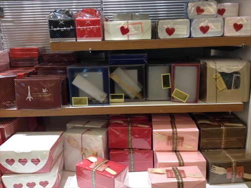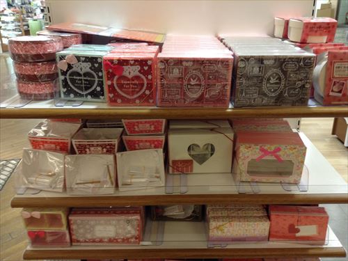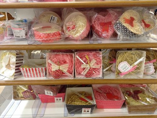 リボンや手作りチョコと箱の隙間に入れる紙も色々と種類が増えていました。ハートタイプもあります。